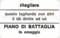 This promotion allowed you to have a Battle Plan for free by delivering 4 purchase proofs to the shopkeeper. The battle plan consisted of a poster showing the playing field on one side and advertising from the promotion on the back. Proofs of purchase consisted of an adhesive that was found on the covers of the 4000 series packs; 4000 series, West history 4050 series, 4100 series, 4600 series Modern armies and 4600 series World War II armies.